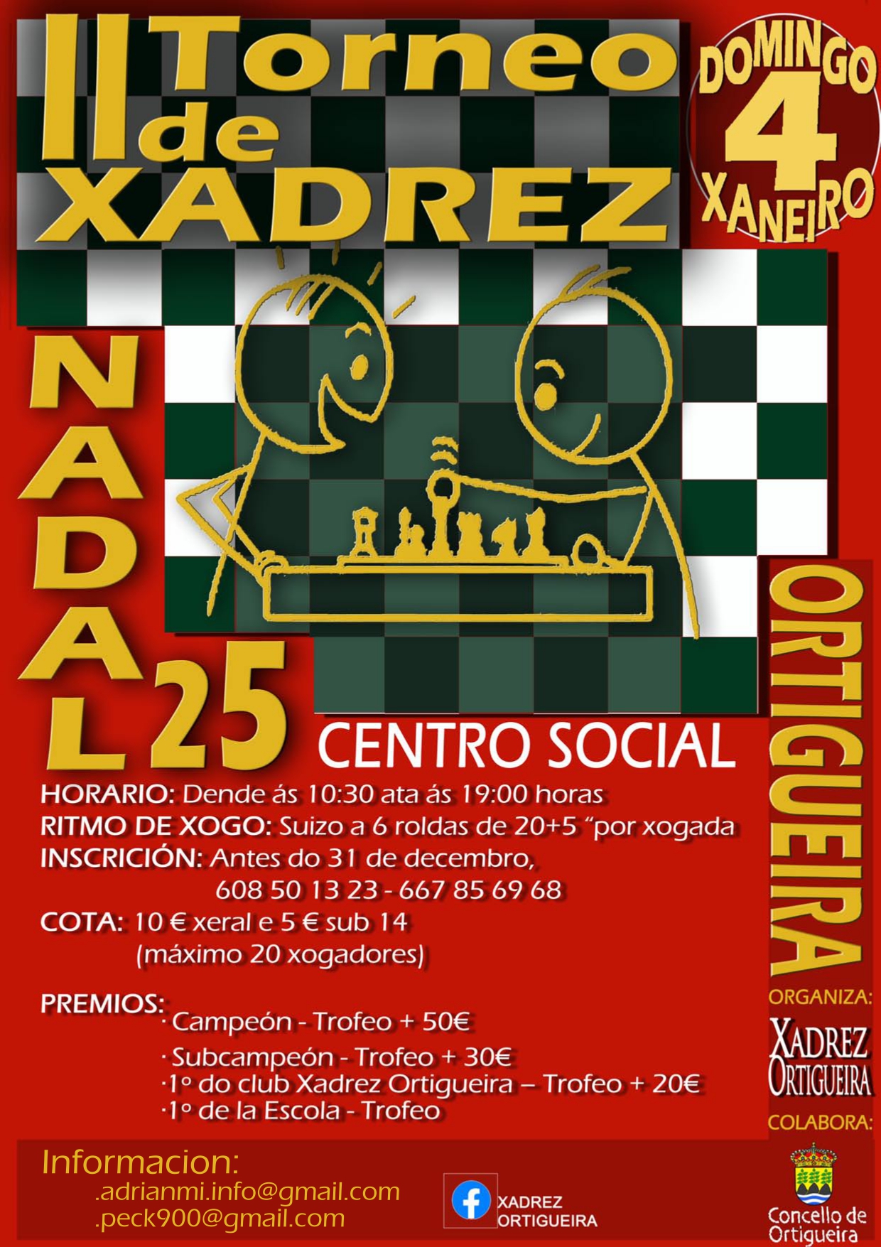 Xadrez Ortigueira organiza, en colaboración do Concello, o II Torneo de Xadrez de Nadal.
