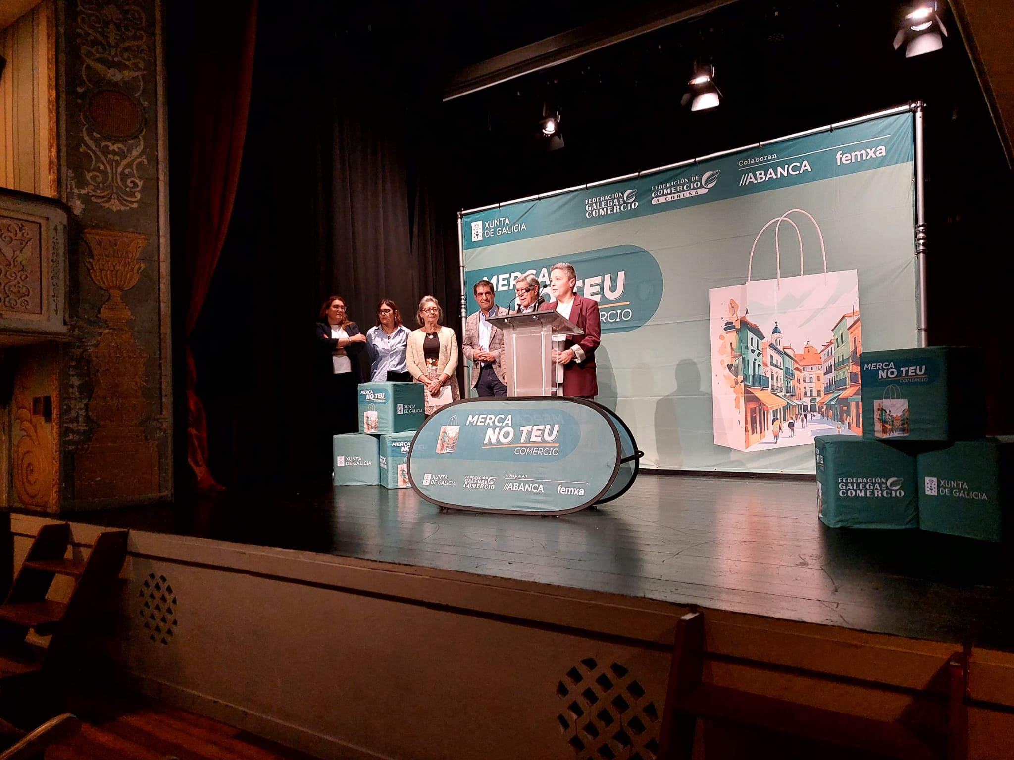 A edil de Fadenda, Isabel Rego, e a edil de Educación, Ana Cartelle, fixeron entrega este xoves, 11 de setembro, Teatro de la Beneficencia, os premios o programa #MercaNoTeuComercio.