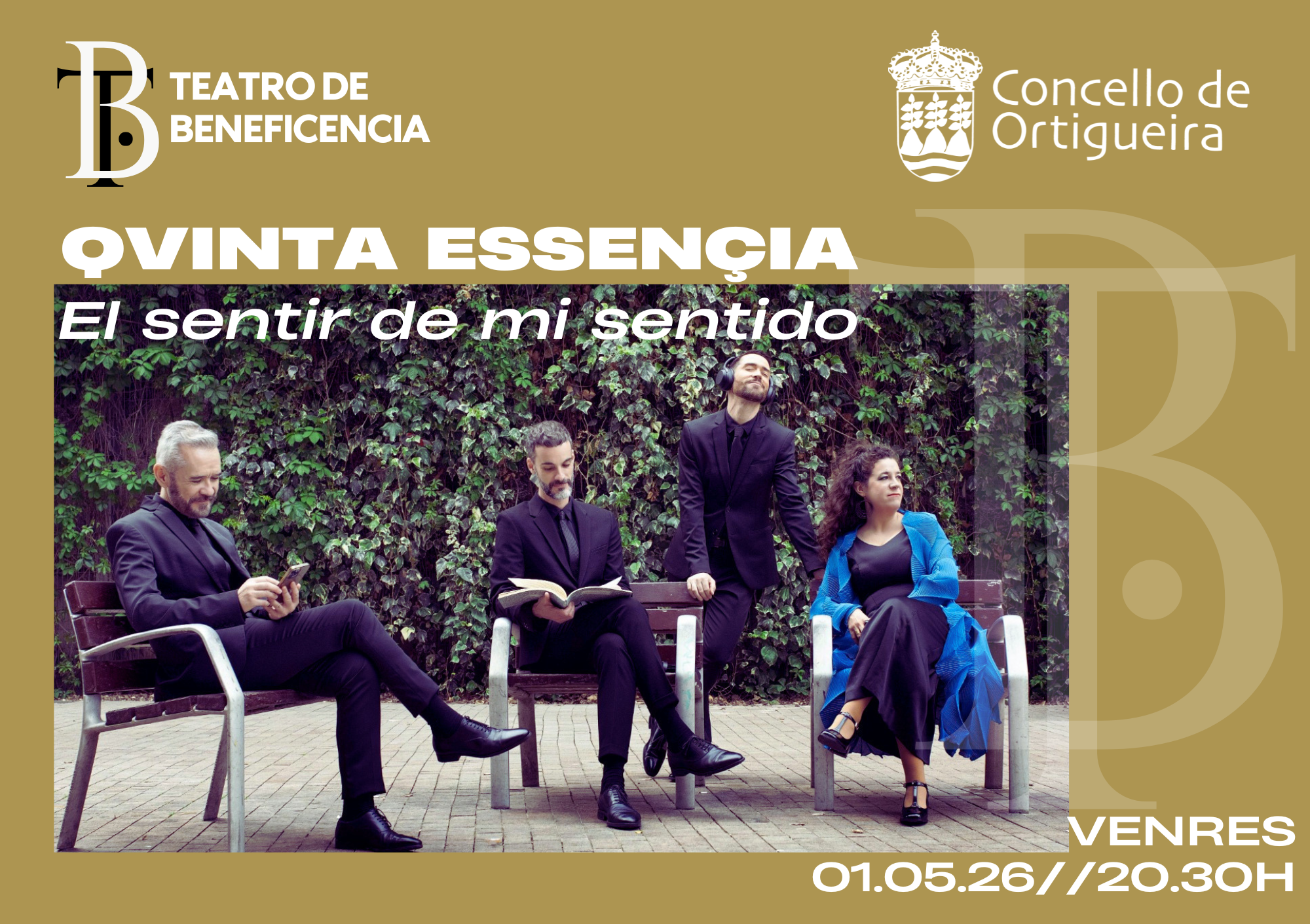O Concello de Ortigueira programa o vindeiro mércores 1 de maio, ás 20.30 horas, un espectáculo de música do Século de Oro. O emblemático Teatro dá Beneficencia converterase no escenario de «O sentir do meu sentido», un espectáculo a cargo do prestixioso grupo vocal ‘Qvinta Essençia’ que explora a extraordinaria vitalidade do repertorio lírico polifónico da España desa época.