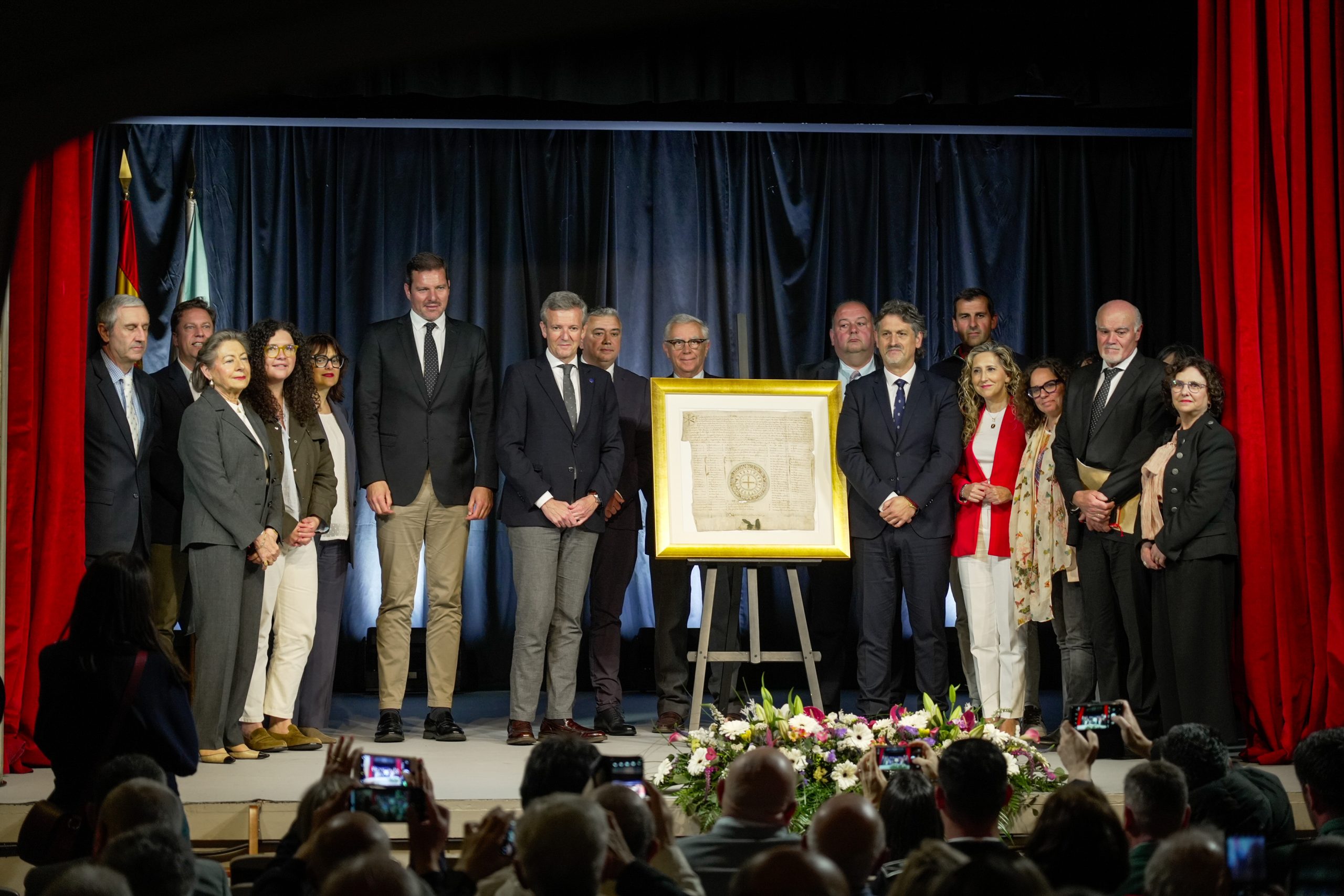 Ortigueira viviu hoxe unha xornada histórica coa entrega oficial do Privilexio Rodado de Alfonso X “O Sabio” e a Confirmación de Enrique III de Castela. Nun acto cargado de simbolismo, o presidente da Xunta de Galicia, Alfonso Rueda, realizou a entrega formal destes valiosos pergamiños, que estarán na localidade grazas ao convenio de comodato asinado coa Fundación Pública Galega Camilo José Cela, entidade propietaria das pezas. O evento contou coa presenza do conselleiro de Cultura, José López Campos, representantes do padroado da fundación e a totalidade dos membros do goberno local, quen quixo arroupar este fito para o patrimonio do municipio.