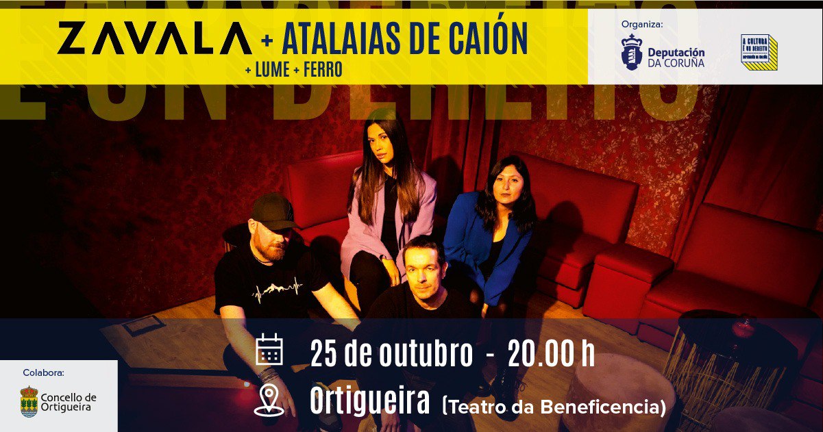 Unha fin de semana máis, o Teatro da Beneficencia de Ortigueira abre as súas portas á cultura, desta vez o sábado, 25 de outubro, con ‘Zavala + atalaias de Caión + lume + ferro’, unha actuación que somerxerá ao público nunha viaxe pola nosa tradición a través da música.