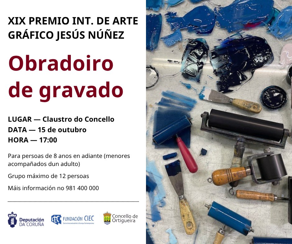 Con motivo do XIX Premio Internacional de Arte Gráfico Jesús Núñez, o Concello e a Deputación organizan un obradoiro de gravado.