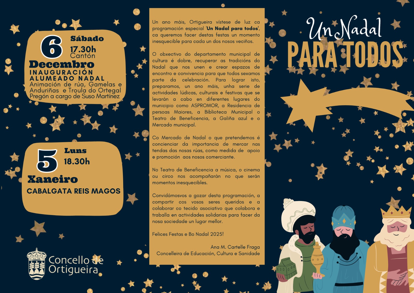 O Concello de Ortigueira presenta para este Nadal unha ampla programación cultural que promete encher as rúas do municipio de alegría e ilusión.