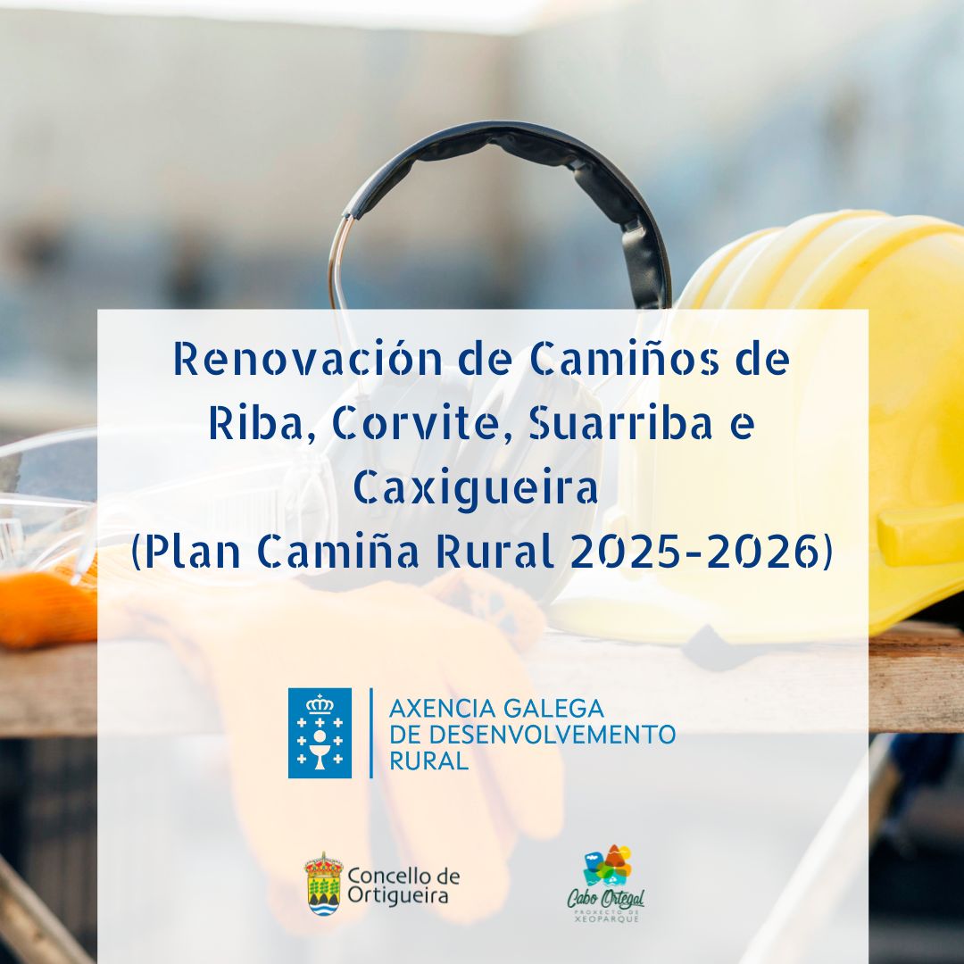 A Axencia Galega de Desenvolvemento Rural (AGADER) concedeu ao Concello de Ortigueira unha axuda, ao abeiro do Plan Camiña Rural, para a actuación denominada “Renovación de Camiños de Riba, Corvite, Suarriba e Caxigueira” por importe de 109.737 euros.